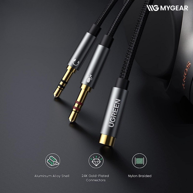 Cáp Audio 3.5mm Ugreen 20899 1 Mic 1 Loa mạ vàng là phụ kiện âm thanh nhỏ gọn nhưng cực kỳ cần thiết cho người dùng laptop và PC sử dụng tai nghe chuẩn 3.5mm tích hợp mic. Với khả năng chia một jack 3.5mm âm thành hai đầu 3.5mm riêng biệt cho mic và audio, dây audio 3.5mm Ugreen giúp giải quyết triệt để tình trạng laptop có cổng mic và loa tách rời.