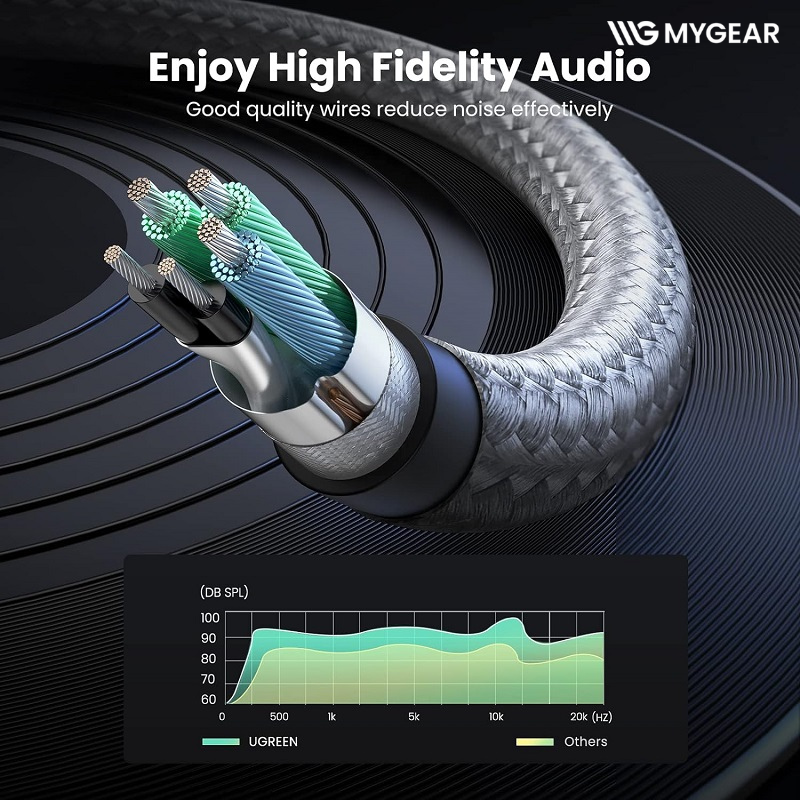 Bên trong cáp loa mic Ugreen 20899 là lõi đồng chất lượng cao, giúp truyền tín hiệu âm thanh chính xác và hạn chế suy hao. Nhờ đó, cáp 3.5mm mic loa Ugreen mang lại chất lượng âm thanh rõ ràng, giọng nói thu mic ổn định, phù hợp cho cả học online, họp Zoom hay voice chat khi chơi game. Đây là điểm cộng lớn giúp Ugreen 20899 chính hãng được người dùng tin tưởng trong phân khúc phụ kiện âm thanh phổ thông.