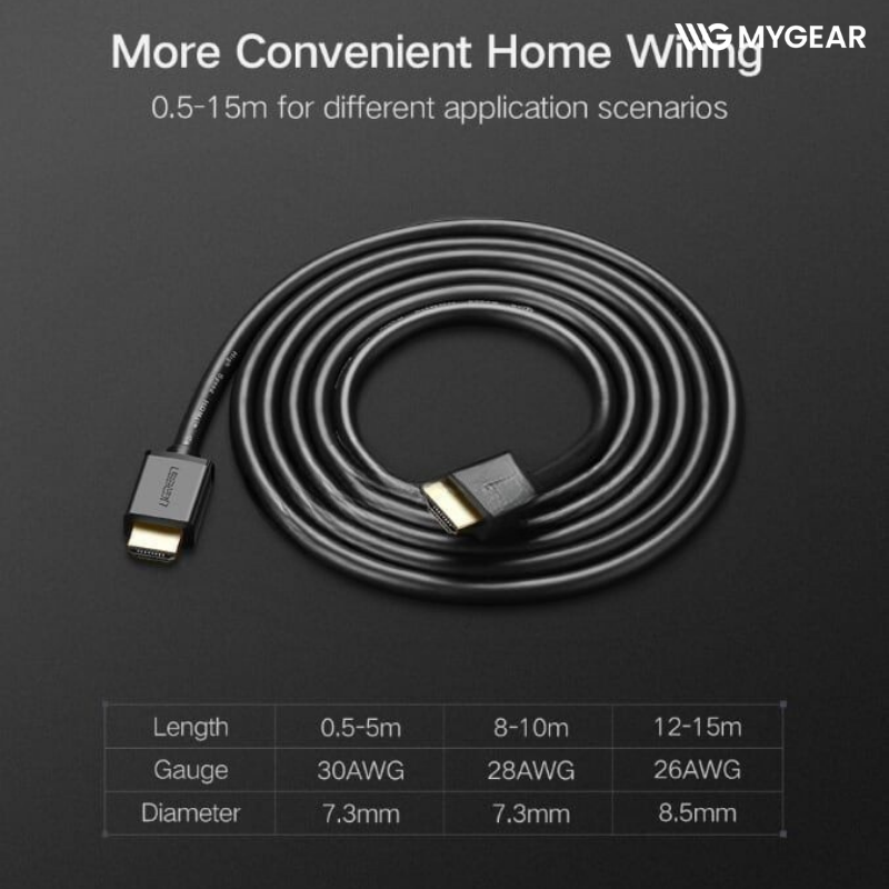 Với chiều dài 5 mét, dây HDMI Ugreen 5 mét đặc biệt phù hợp cho các không gian cần kéo dây xa như phòng khách, phòng họp hoặc lắp đặt máy chiếu. Khi mua tại MYGEAR, cáp HDMI Ugreen 10109 được sử dụng hiệu quả cùng các thiết bị đang có sẵn như TV 4K, màn hình gaming, PC gaming, máy chiếu, Android TV Box, console chơi game, giúp người dùng hoàn thiện hệ thống giải trí và làm việc tiện lợi.