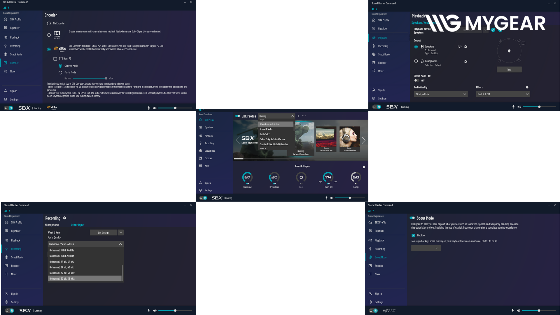 Trên main card, Creative Sound Blaster AE-7 được trang bị đầy đủ các cổng Front, Rear, Center/Sub, Mic/Line-in và Optical Out. Cách bố trí cho phép sử dụng hệ thống loa stereo hoặc 5.1 một cách dễ dàng. Khả năng xuất âm đa kênh giúp DAC AMP chơi game chuyên nghiệp AE-7 phù hợp cho cả giải trí và làm việc.
