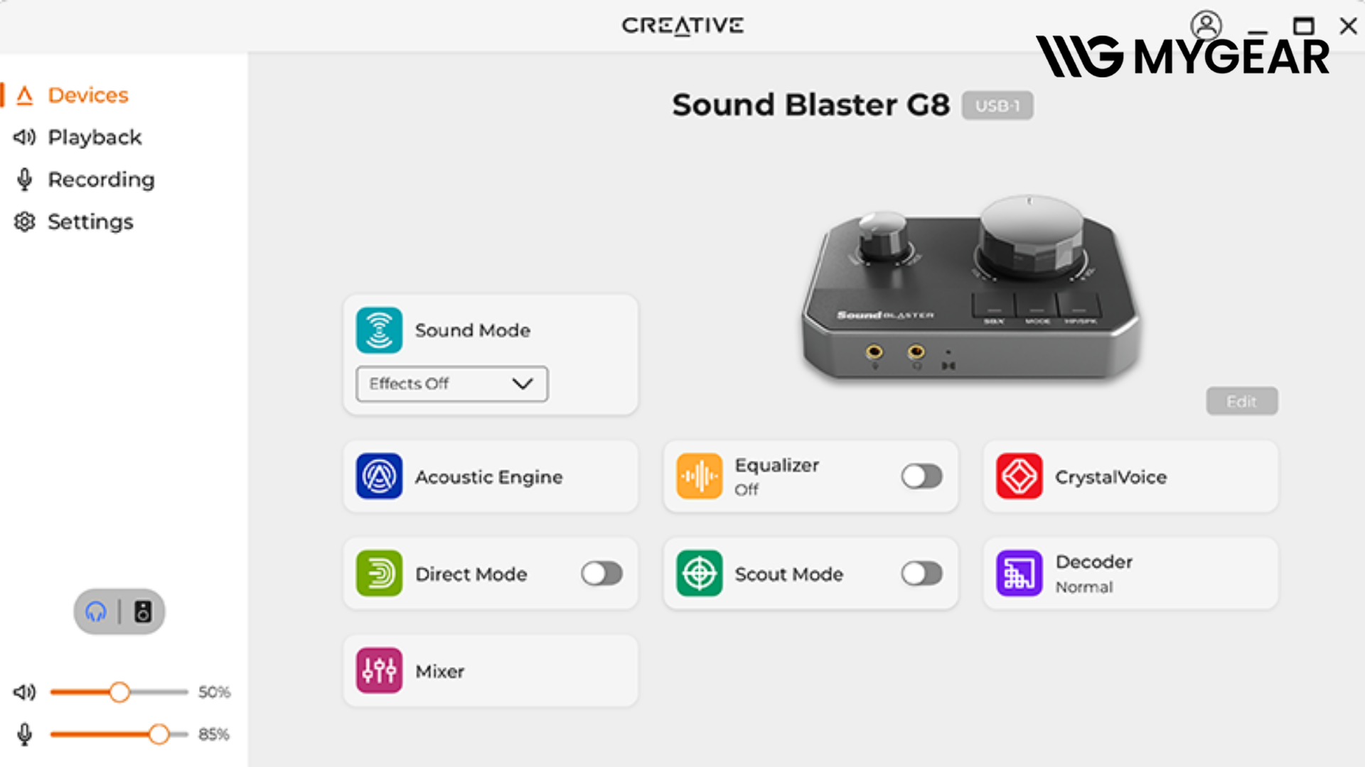 Sound Blaster G8 được trang bị loạt công nghệ quen thuộc của Creative như Sound Blaster Acoustic Engine, CrystalVoice và GameVoice Mix. Các tính năng trên giúp tinh chỉnh âm thanh game, cải thiện chất lượng giọng nói và cân bằng giữa voice chat với âm thanh trong game. Đối với streamer hoặc game thủ chơi team, đây là lợi thế rõ ràng trong quá trình sử dụng thực tế.