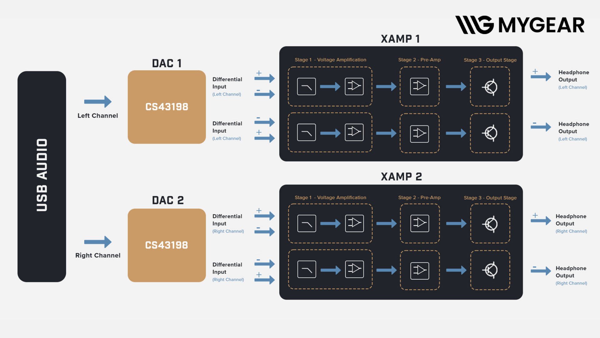 Trái tim của Creative X5 DAC AMP là cấu hình Dual DAC CS43198 từ Cirrus Logic, mỗi kênh sử dụng một DAC riêng biệt. Thiết kế dual mono giúp cải thiện đáng kể khả năng tách kênh, giảm nhiễu xuyên âm và nâng cao độ chi tiết.