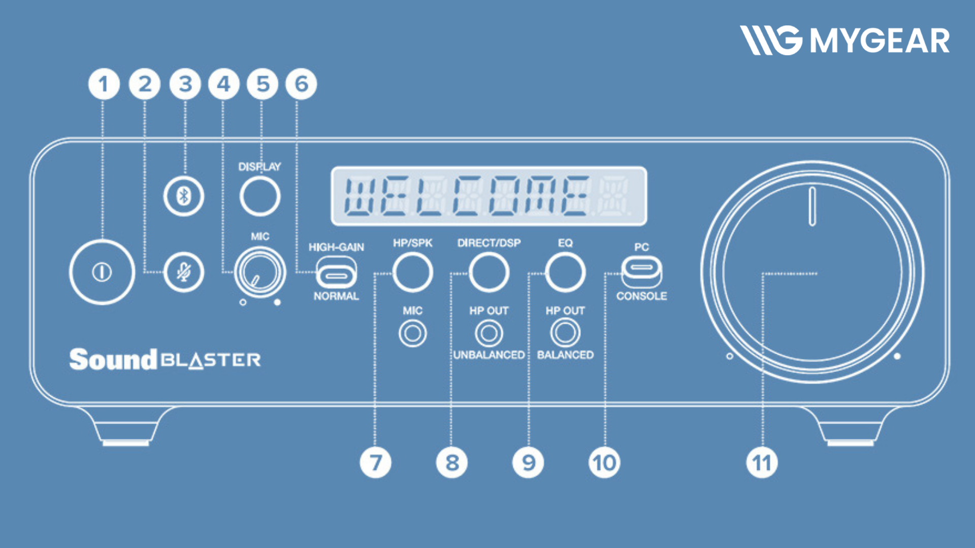 Sound Blaster X5 cho phép điều khiển nhanh thông qua các nút vật lý như Gain Low/High, EQ, Direct/DSP, Mic Mute và Bluetooth Pair. Việc chuyển đổi giữa chế độ Direct và DSP giúp người dùng lựa chọn giữa âm thanh nguyên bản hoặc âm thanh đã xử lý. Khả năng tùy chỉnh giúp thiết bị phù hợp với nhiều gu nghe khác nhau.