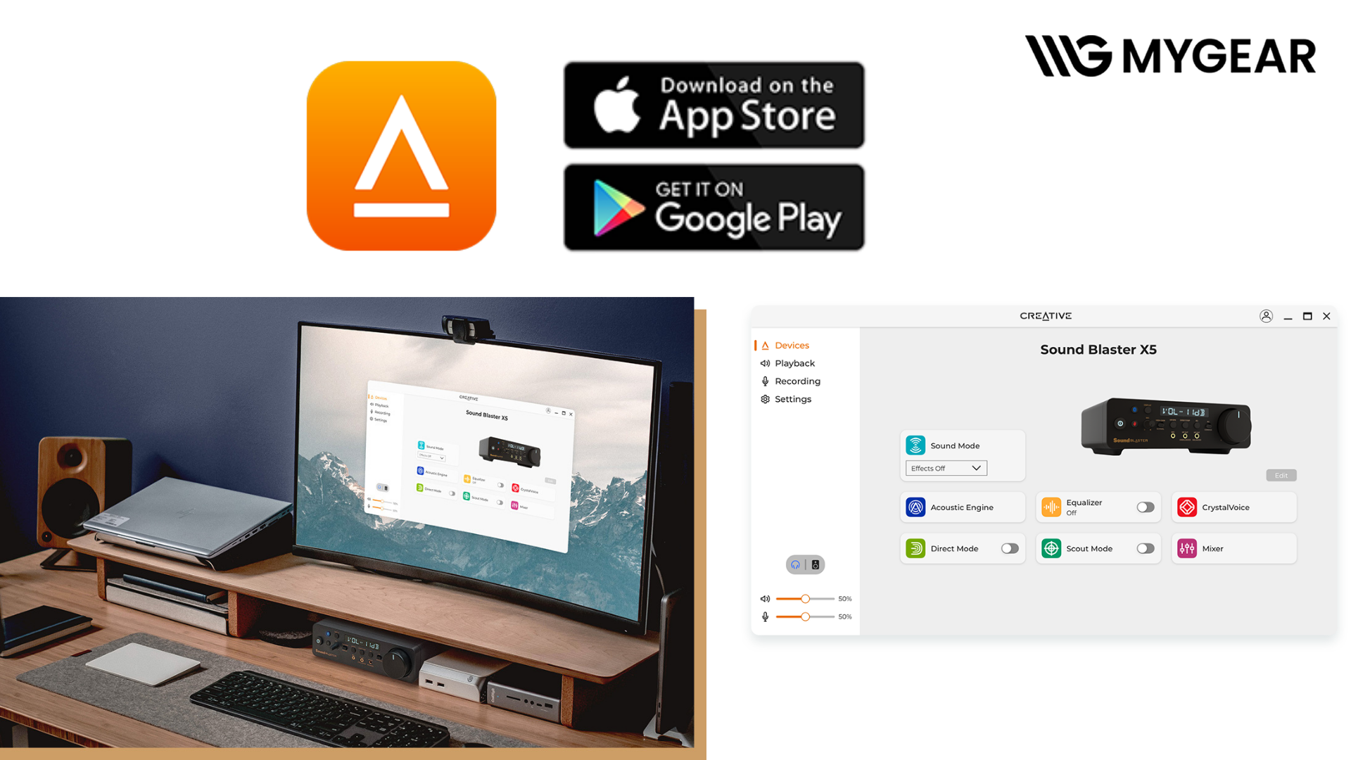 Khi kết hợp cùng PC cao cấp, tai nghe audiophile, tai nghe gaming, loa kiểm âm, màn hình máy tính, CPU Intel hoặc AMD, mainboard, RAM, SSD NVMe, card đồ họa và các linh kiện đang được phân phối tại MYGEAR, card âm thanh audiophile Creative X5 trở thành trung tâm âm thanh hoàn hảo cho cả giải trí lẫn làm việc.