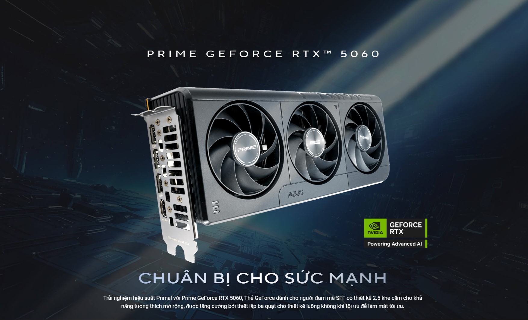 Card màn hình ASUS PRIME RTX 5060 8GB GDDR7 là sản phẩm mới thuộc dòng PRIME của ASUS, mang đến hiệu suất vượt trội trong tầm giá. Được trang bị GPU NVIDIA® GeForce RTX™ 5060 dựa trên kiến trúc Blackwell mới nhất, card không chỉ phục vụ tốt cho nhu cầu chơi game mà còn hỗ trợ mạnh mẽ cho các tác vụ sáng tạo nội dung, thiết kế 2D/3D và dựng phim.