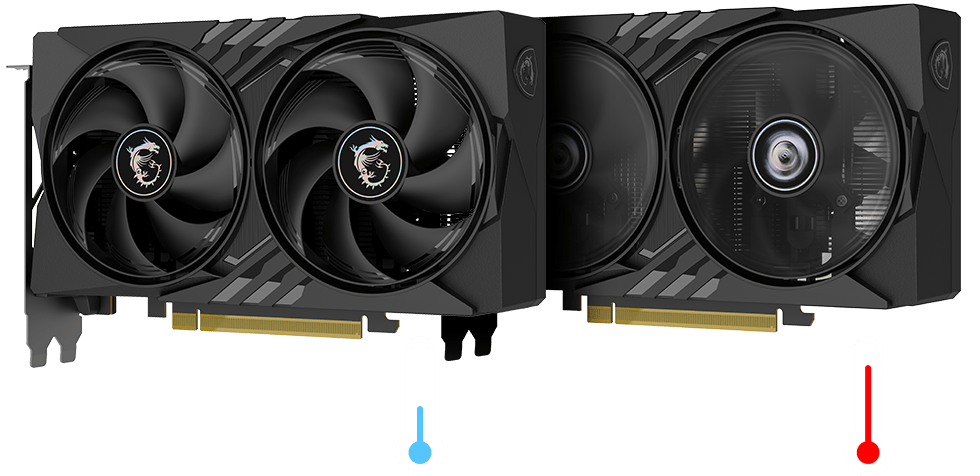 Phiên bản MSI GAMING OC nổi bật với thiết kế tản nhiệt Twin Frozr 10 sử dụng cánh quạt kép, tăng áp suất gió tới 23%, ống dẫn nhiệt core-pipe giúp truyền nhiệt nhanh và đều trên toàn bộ bề mặt heatsink, đồng thời Backplate kim loại chắc chắn, giúp tản nhiệt thụ động và gia tăng độ bền kết cấu. Toàn bộ hệ thống được tinh chỉnh để hoạt động êm ái, mát mẻ ngay cả khi tải nặng.