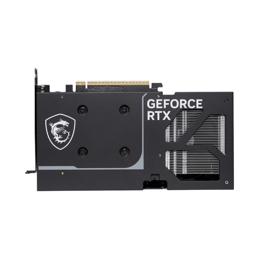 MSI GeForce RTX 5060 Ti Ventus 2X Plus sở hữu thiết kế tông đen bạc sang trọng, phần backplate kim loại chắc chắn, bảo vệ bo mạch và hỗ trợ tản nhiệt thụ động. Tổng thể card toát lên vẻ đơn giản nhưng mạnh mẽ, phù hợp với mọi cấu hình PC gaming hoặc làm việc chuyên nghiệp.