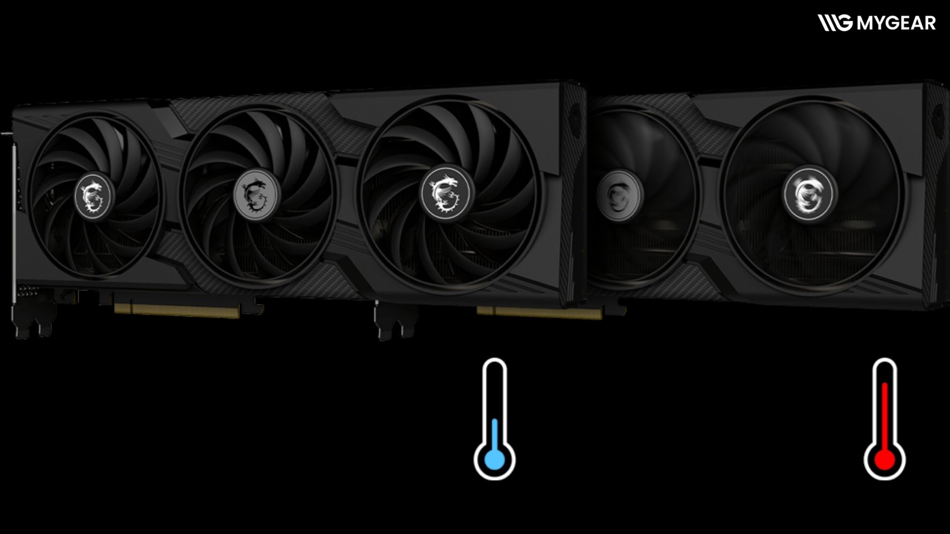 Các ống dẫn nhiệt Core Pipes và lá tản nhôm được thiết kế khoa học giúp truyền nhiệt nhanh từ GPU ra toàn bộ bề mặt tản nhiệt, đảm bảo hiệu suất luôn ổn định ngay cả khi ép xung. Thành phần linh kiện đạt chuẩn MSI Military Class với độ bền, khả năng chống oxy hóa và hoạt động ổn định trong thời gian dài.