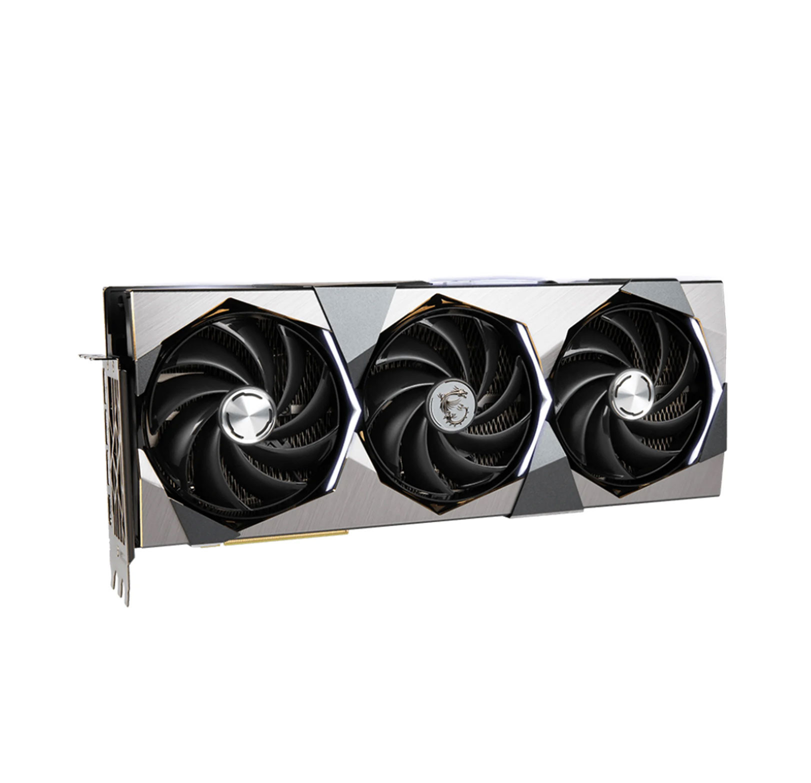 Nói về thiết kế, MSI NVIDIA GeForce RTX 4070 Ti SUPRIM X được hoàn thiện với những đường nét sắc sảo đến khó tin. Đây là sự kết hợp giữa hình khối bát giác và những đường cắt tinh tế. Mặt trước của sản phẩm là các tấm kim loại bóng bẩy toát lên vẻ thời trang của dòng SUPRIM X và tỷ lệ vàng của các góc cạnh.