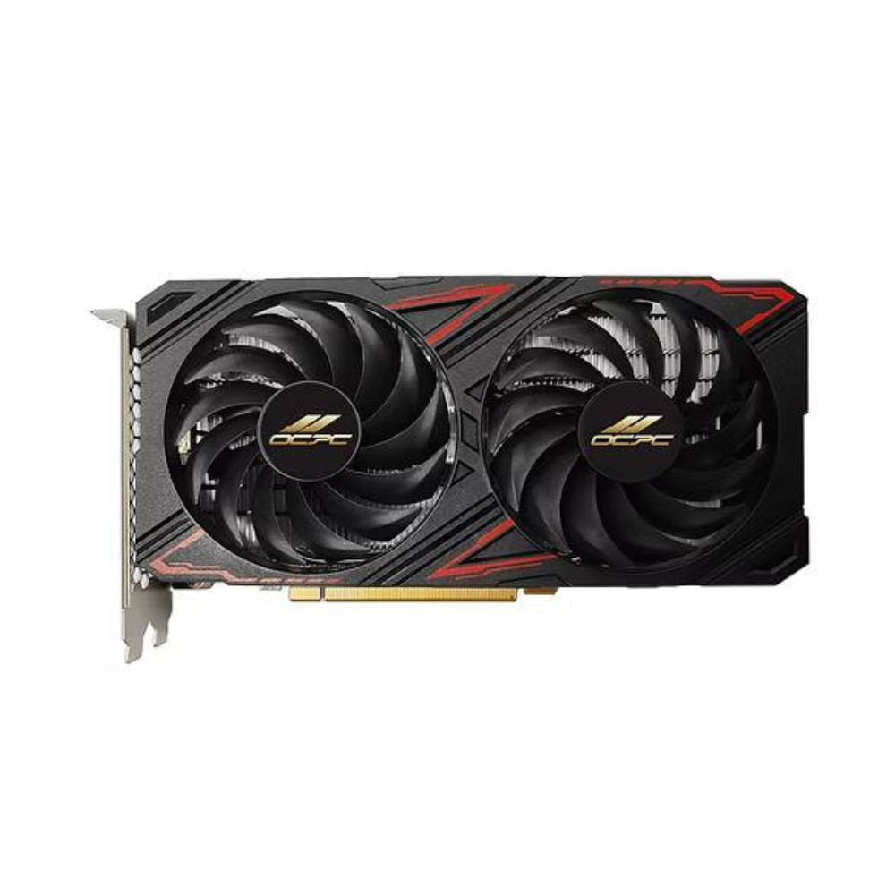 Card đồ họa AMD Radeon RX 6600 XR OC nổi bật với thiết kế hai quạt tản nhiệt kép, tone màu đen nhám đậm chất gaming, kết hợp logo OCPC RGB tinh tế ở cạnh. Kích thước vừa gọn, dễ dàng lắp đặt trong các case mid hoặc mini-tower, nhưng vẫn đảm bảo khả năng tản nhiệt tối ưu cho GPU khi hoạt động ở hiệu năng cao. Tổng thể vừa đẹp, vừa bền, phù hợp với setup gaming hiệu năng cao trong tầm giá hợp lý.