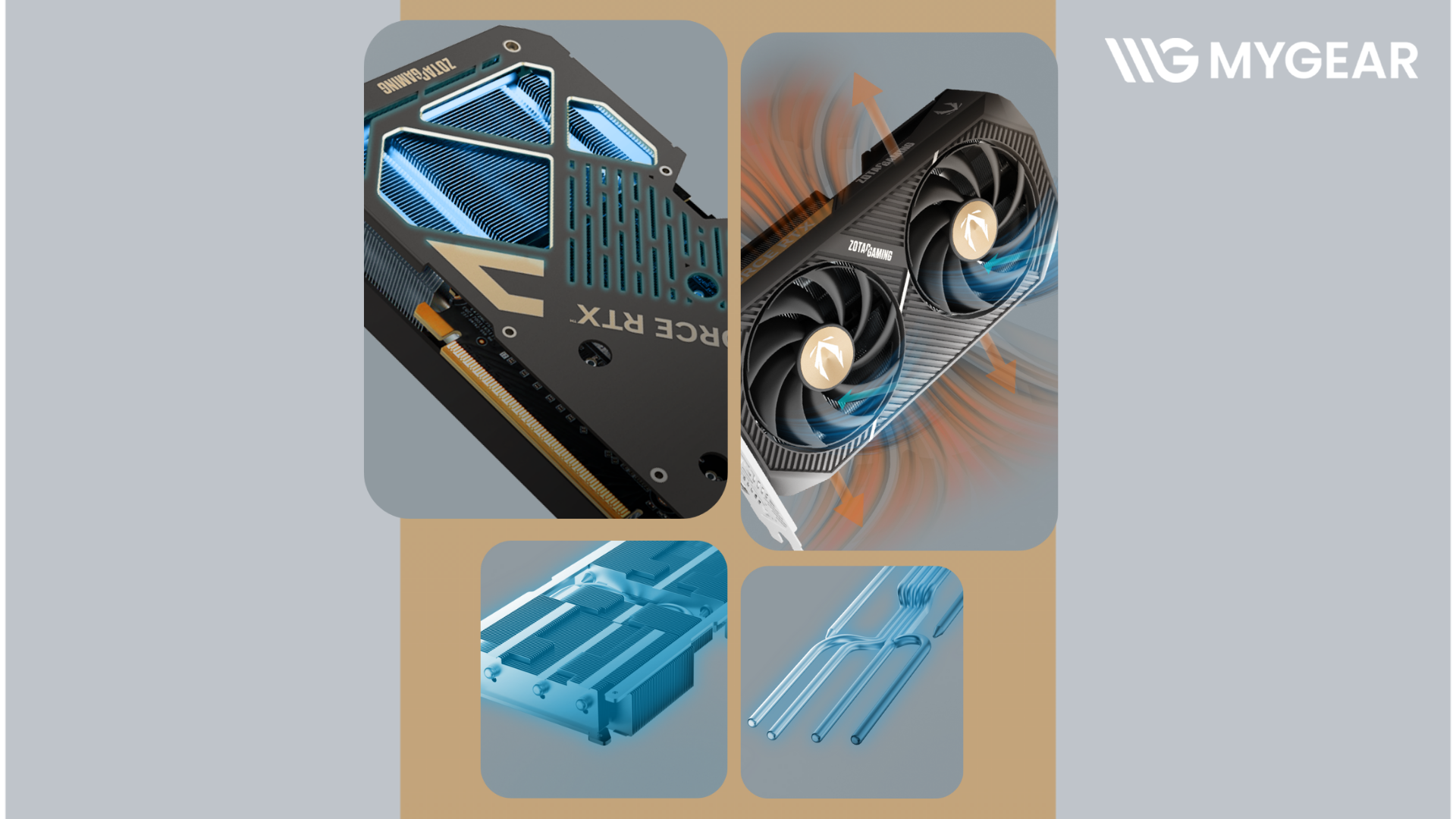 Thiết kế của ZOTAC RTX 5060 Ti sử dụng hệ thống tản nhiệt IceStorm 2.0 với 2 quạt làm mát hiệu suất cao, giúp duy trì nhiệt độ ổn định ngay cả khi hoạt động ở mức tải nặng. Với độ dày chỉ 2 slot và chiều dài 220.5mm, ZOTAC GAMING Twin Edge dễ dàng lắp đặt trong nhiều loại case từ mid tower đến compact ATX.