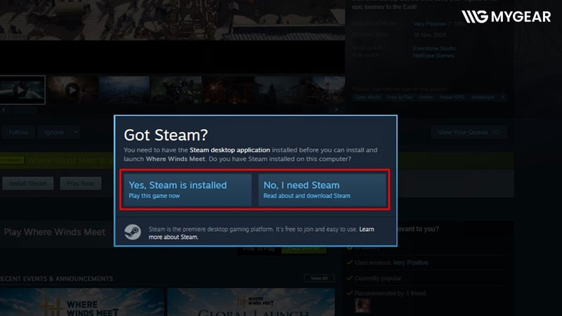 Bước 1: Mở ứng dụng Steam trên máy tính và nhập Where Winds Meet vào thanh tìm kiếm.