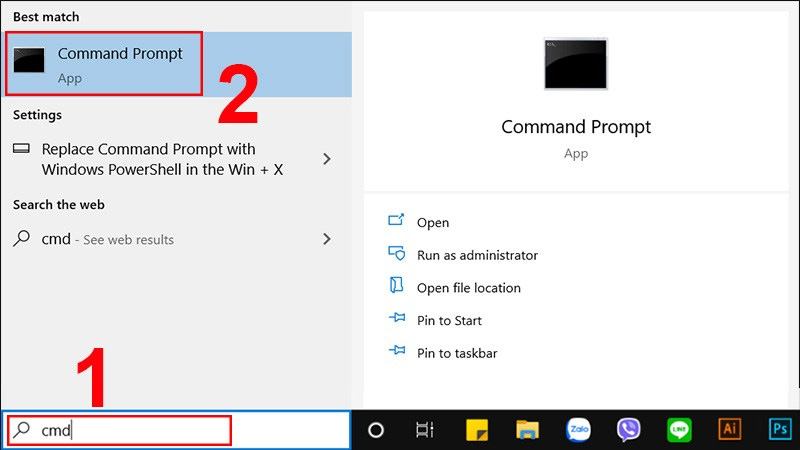- Bước 1: Nhấn Windows Start, sau đó tìm và chọn Command Prompt.