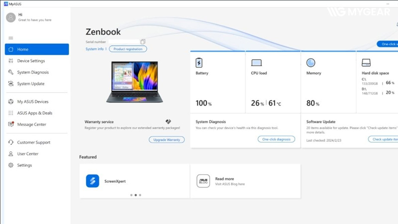 Cách 2: Kiểm tra IMEI/Serial Number bằng ứng dụng MyASUS