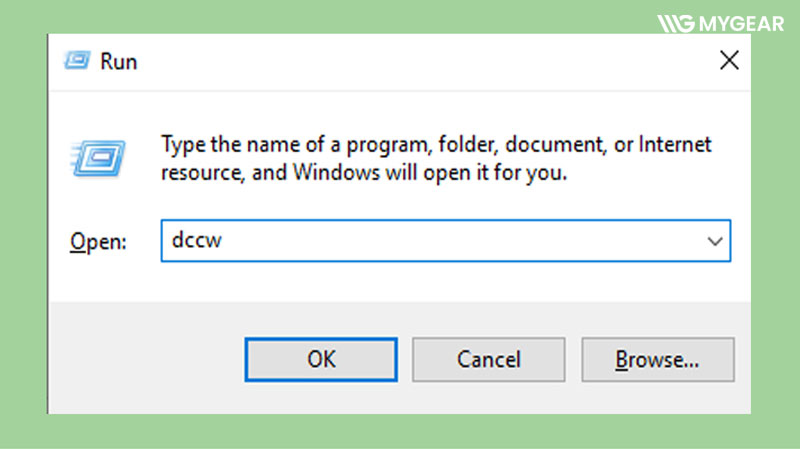 - Nhấn Windows + R, nhập dccw, nhấn Enter.