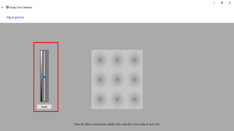 - Trong mục Adjust gamma, kéo thanh trượt để chấm tròn gần như biến mất, đảm bảo màu sắc trung tính và hình ảnh hài hòa.