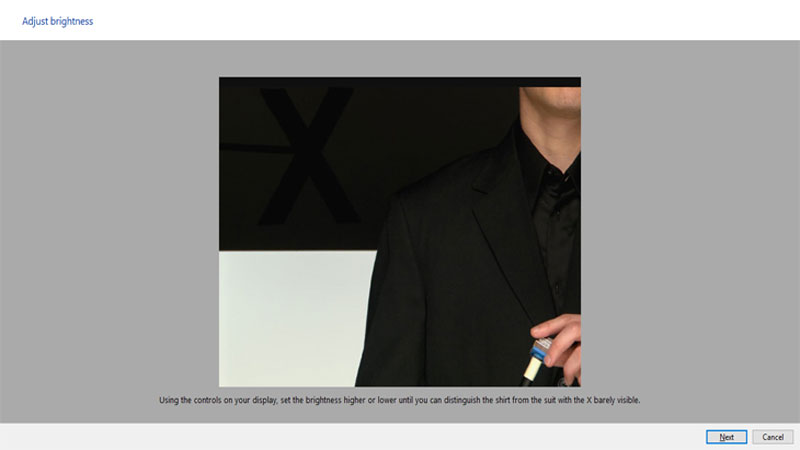 - Tiếp tục nhấn Next và đến Adjust brightness để chỉnh độ sáng.