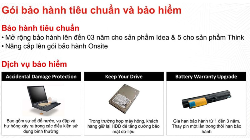 - Lenovo cho phép khách hàng mua thêm gói gia hạn bảo hành để kéo dài thời gian sử dụng.