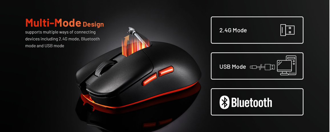 Hỗ trợ kết nối nhiều thiết bị với 3 mode, 2.5G mode, Bluetooth mode và USB mode.