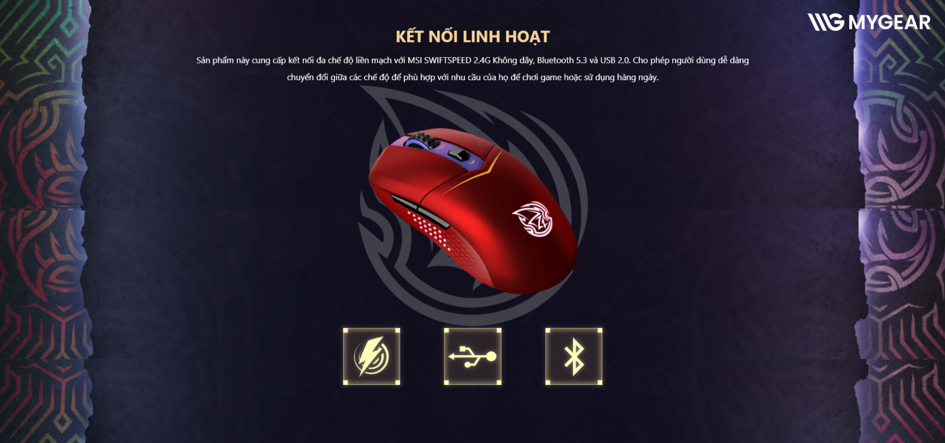 | Kết nối | 2.4 GHz Wireless (MSI SwiftSpeed), Bluetooth 5.3, USB 2.0 |