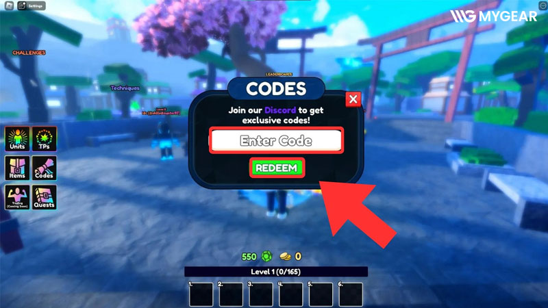 Sau khi bấm vào biểu tượng Codes, một cửa sổ mới sẽ hiện ra. Tại đây, bạn hãy nhập hoặc dán mã code Anime Last Stand vào ô “Enter Code”. Lưu ý các mã code phân biệt chữ hoa và chữ thường, vì vậy nên copy–paste trực tiếp để tránh sai sót.