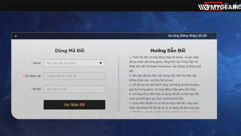 Trang nhập code chính thức: https://hsr.hoyoverse.com/gift
