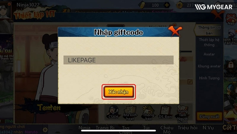 - Nhập code Huyền Thoại Làng Lá vào ô tương ứng