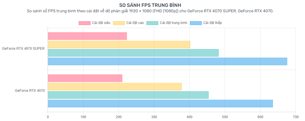 Để đánh giá đúng về Colorful IGame GeForce RTX 4070 SUPER Advanced OC-V, cần so sánh RTX 4070 SUPER Advanced OC-V với các mẫu khác trong cùng dòng và phân khúc như RTX 4070, RTX 4070 TI và các dòng từ hãng khác.