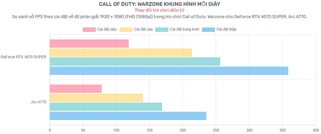 Trong tựa game Call of Duty: Warzone, card màn hình RTX 4070 đạt được tốc độ khung hình khoảng 90 FPS khi thiết lập đồ họa ultra. Đây là một kết quả ấn tượng, giúp các game thủ có trải nghiệm mượt mà và không bị giật lag.