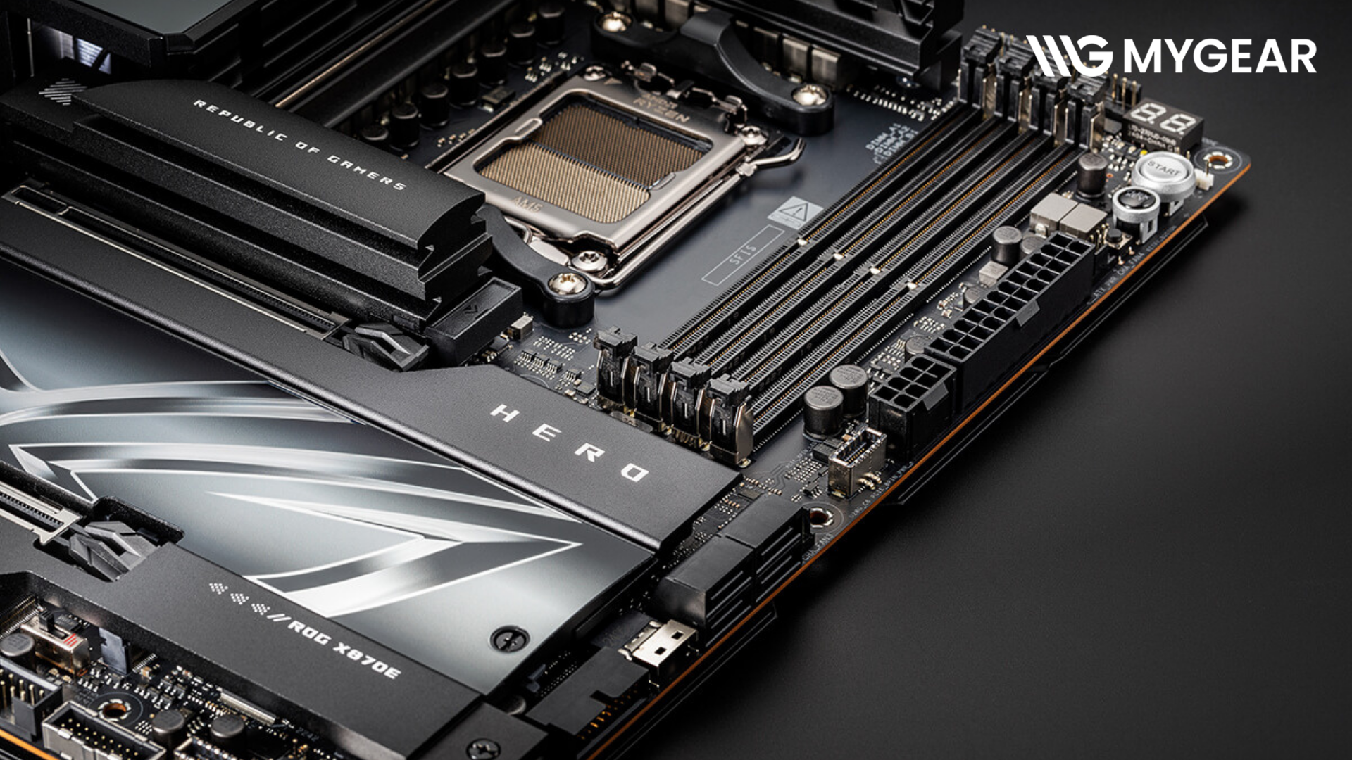 Khi build tại MYGEAR, mainboard ASUS ROG Crosshair X870E Hero và RAM G.Skill Trident Z5 RGB 64GB DDR5 6000 hoạt động rất ổn định cùng các linh kiện cao cấp như CPU AMD Ryzen, card màn hình RTX, SSD PCIe 5.0, nguồn công suất lớn và tản nhiệt nước, tất cả đều có sẵn tại MYGEAR, mang đến trải nghiệm hoàn thiện cho người dùng cao cấp.