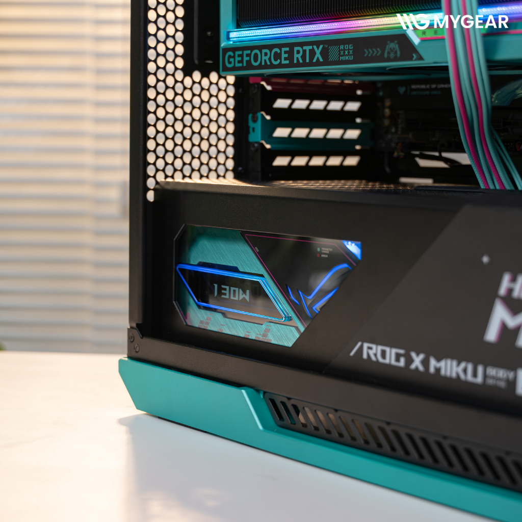 Toàn bộ các linh kiện và phụ kiện đều mang phiên bản Hatsune Miku Edition với màu xanh ngọc và hồng đặc trưng, kết hợp hình ảnh Vocaloid huyền thoại, tạo nên một set PC gaming mang tính sưu tầm cao. Bộ ROG Hatsune Miku Preorder được sản xuất số lượng có hạn, dành riêng cho cộng đồng fan và game thủ sưu tầm. Sở hữu combo này đồng nghĩa bạn đang nắm trong tay một phần của thế giới Miku kết hợp công nghệ ASUS ROG.