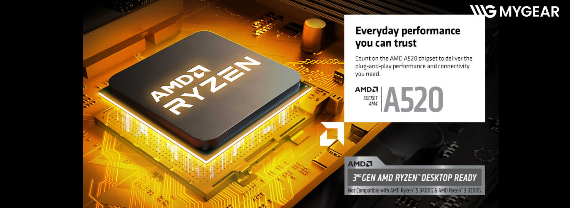 Với 2 khe RAM DDR4 hỗ trợ tối đa 64GB, khe M.2 tốc độ cao và các cổng kết nối USB 3.2 Gen1, HDMI và DVI-D, MSI A520M-A PRO mang đến sự tiện lợi cho cả người dùng gaming lẫn văn phòng. Sự kết hợp này tạo nên combo mainboard MSI A520 MYGEAR có hiệu năng ổn định, dễ lắp đặt, phù hợp với người mới bắt đầu build máy hoặc muốn tối ưu chi phí mà vẫn đảm bảo chất lượng.
