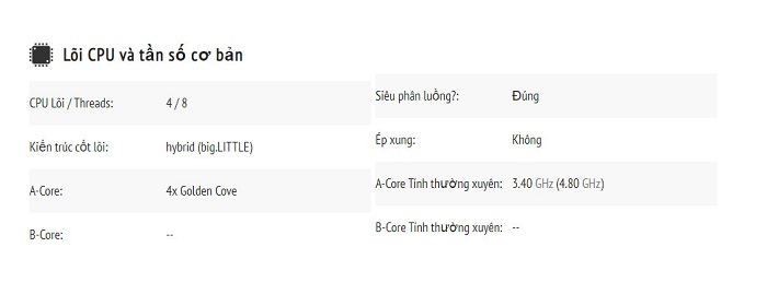 Lõi CPU và Tần số cơ bản của CPU Intel Core i3-13100