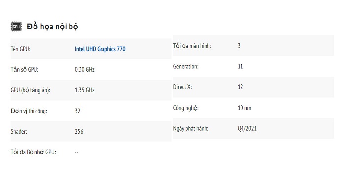Đồ họa nội bộ CPU Intel Core i3-13100