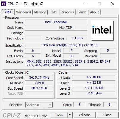 Theo như hình ảnh ta có thể thấy CPU Intel Core i3-13100 đang chạy trên xung cơ bản là 3,4 GHz, tăng 0,1 GHz so với thế hệ tiền nhiệm trước.