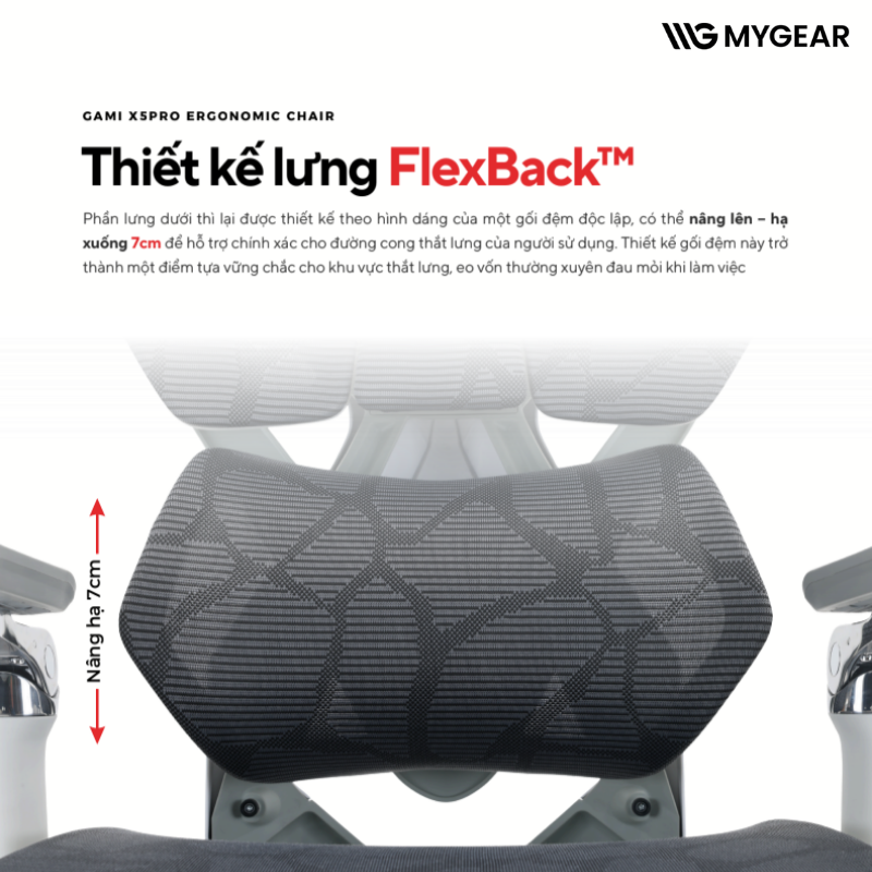 Tựa lưng | FlexBack 4 mảnh độc lập, hỗ trợ thắt lưng chỉnh linh hoạt |