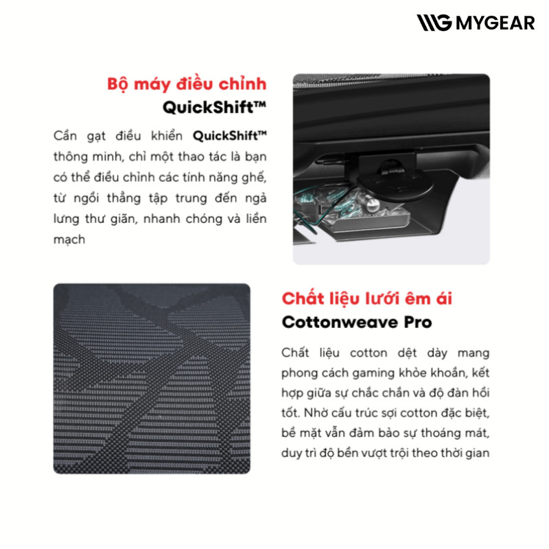 Khác với các dòng ghế gaming truyền thống dùng da PU, ghế lưới CottonWeave Pro của Gami X5 Pro mang đến khả năng thoáng khí cực tốt, giúp bạn luôn cảm thấy dễ chịu ngay cả trong môi trường nóng bức.