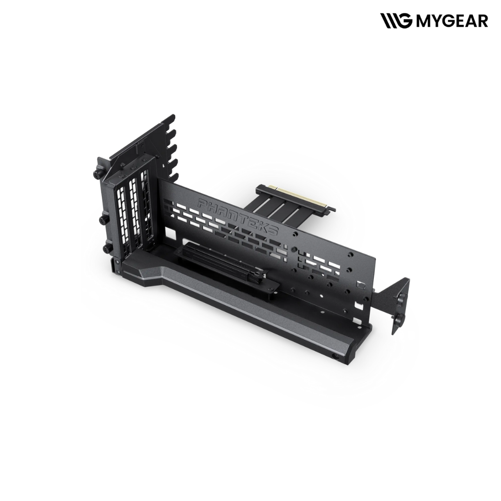 Bracket đi kèm cáp Riser PCIe Gen4 x16 dài 220 mm, hỗ trợ đầy đủ băng thông PCIe 4.0, đảm bảo vertical GPU mount Phanteks DRGB hoạt động ổn định và hiệu năng card đồ họa không bị ảnh hưởng.