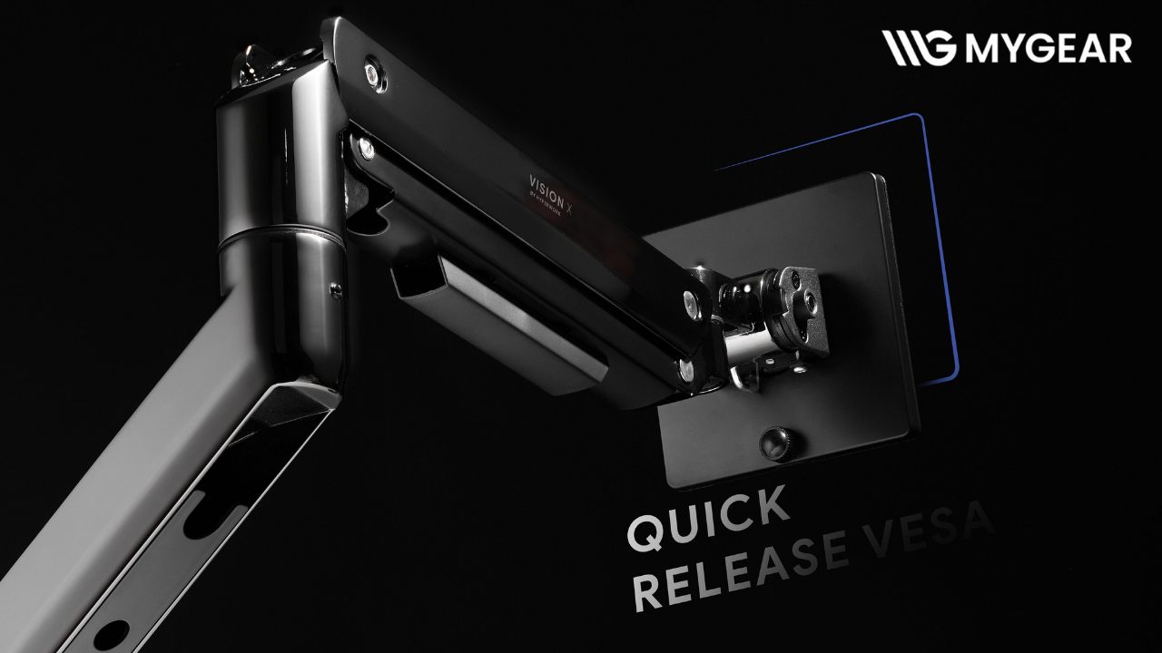 Giá đỡ màn hình HyperWork VisionX Stealth VS01 tương thích chuẩn VESA 75×75 và 100×100 mm, phù hợp hầu hết màn hình hiện nay. Cơ chế Quick Release VESA giúp tháo – lắp dễ dàng trong vài giây. Khi cần nâng cấp hoặc vệ sinh bàn làm việc, người dùng không cần tháo toàn bộ arm, rất tiện lợi và tiết kiệm thời gian.