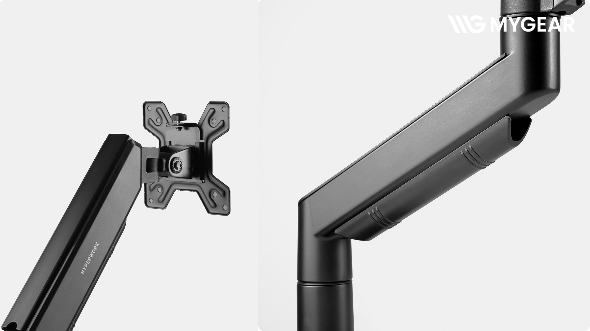 Arm VESA 75x75 100x100 giúp sản phẩm tương thích với phần lớn màn hình trên thị trường. Điểm cộng lớn của HyperWork Core Arm SA01 là hỗ trợ quick release VESA, giúp tháo lắp màn hình nhanh chóng mà không cần thao tác phức tạp. Đây là tính năng đặc biệt hữu ích khi cần thay màn hình hoặc di chuyển vị trí lắp đặt.