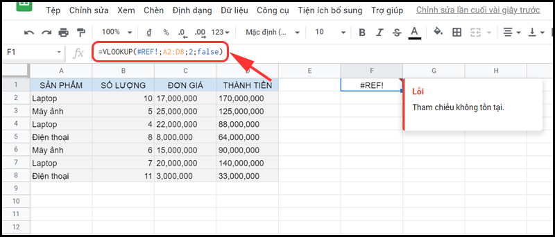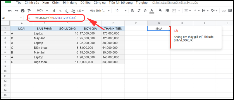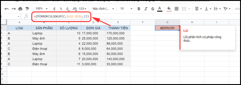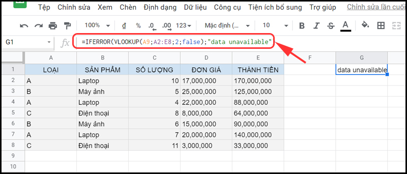 Hướng dẫn cách kết hợp hàm VLOOKUP và hàm IFERROR trong Google Sheet chi tiết