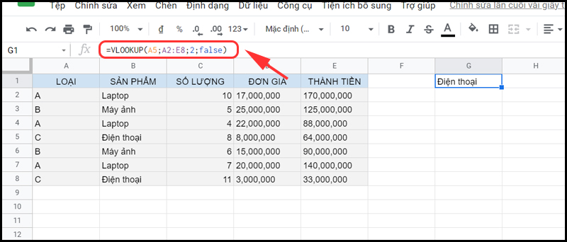 Hướng dẫn cách sử dụng hàm VLOOKUP trong Google Sheet chi tiết