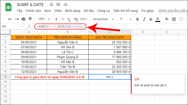 Các lỗi thường gặp khi kết hợp hàm SUMIF và hàm DATE trong Google Sheet