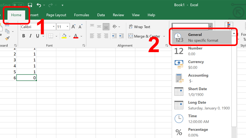 - Để có thể hiển thị các giá trị vừa ẩn, bạn chọn vào các ô > Sau đó vào Home > Ở trong phần Number Format > Bạn tiến hành chọn General.
