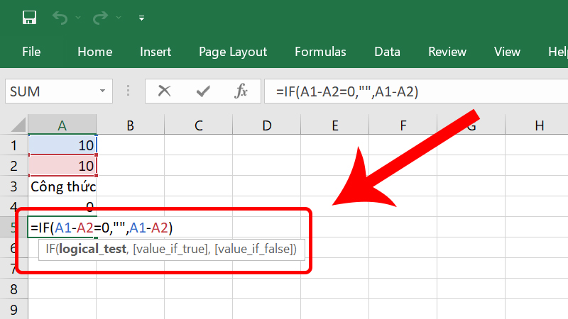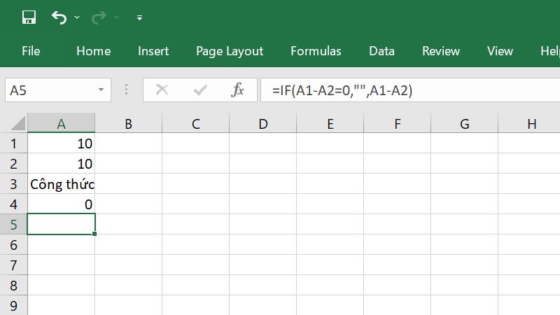 Đây là một cách dùng để đọc công thức: Nếu 0 là kết quả của (A1-A2), nó sẽ không hiện 0, không hiển thị gì ( mà chỉ báo bằng dấu ngoặc kép). Trong trường hợp điều đó không đúng, nó sẽ hiện ra kết quả của A1-A2.