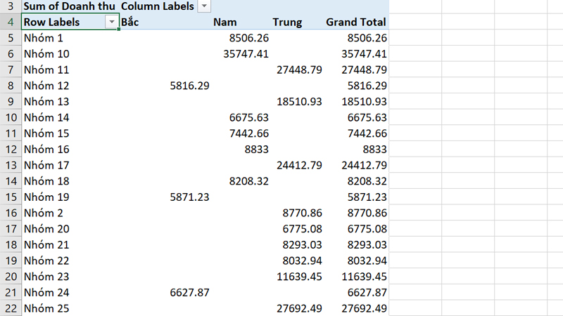 Để có thể ẩn đi các giá trị bằng không trong báo cáo PivotTable, bạn tiến hành các bước như sau: