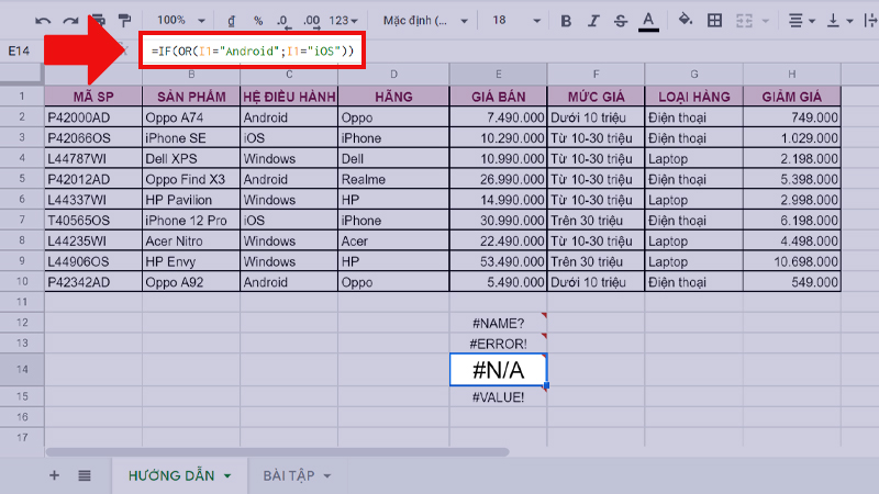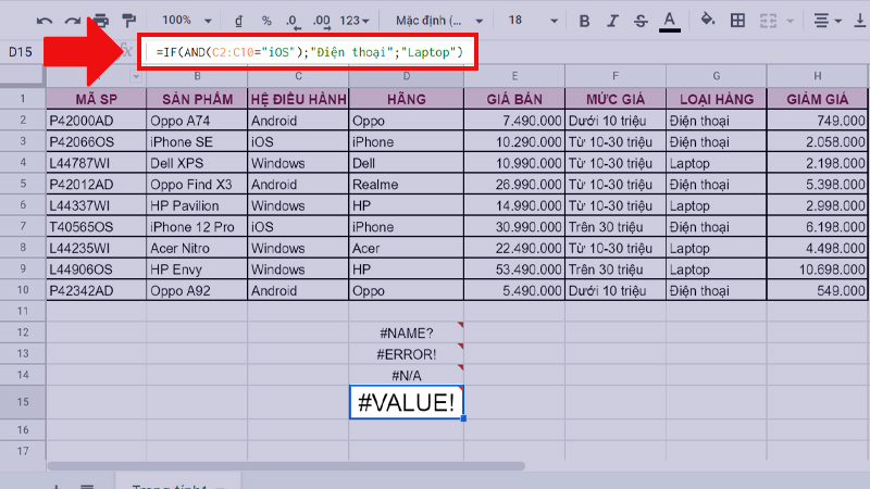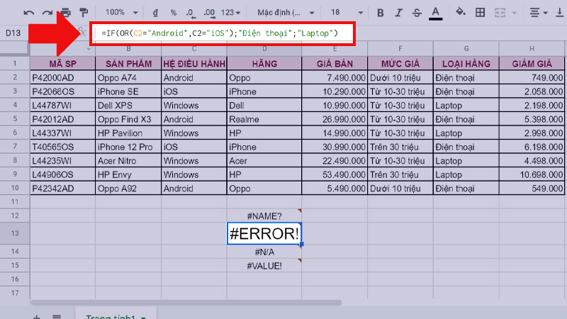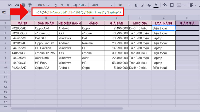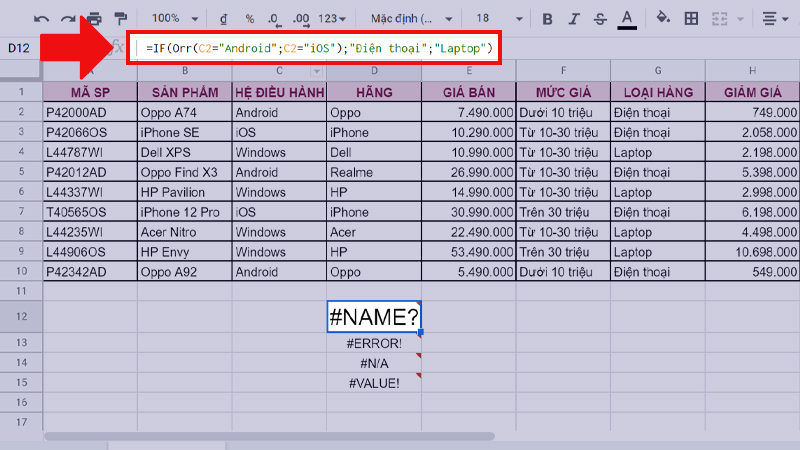 =IF(OR(C2="Android";C2="iOS");"Điện thoại";"Laptop")