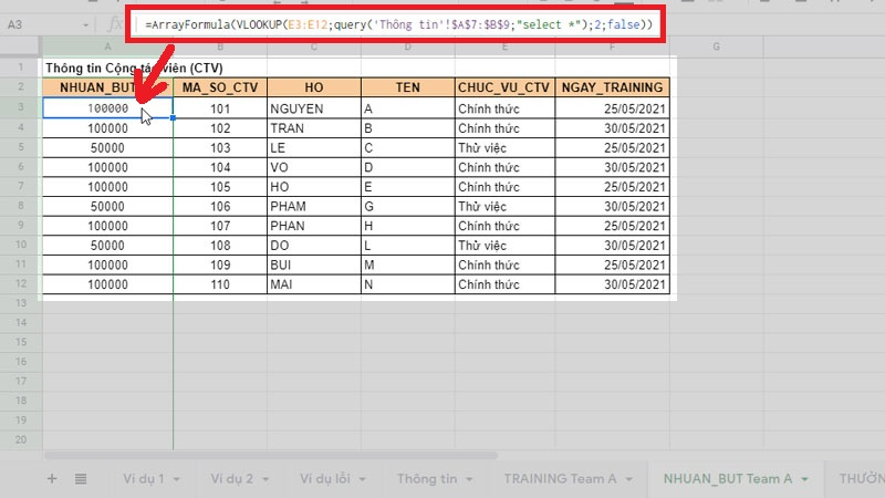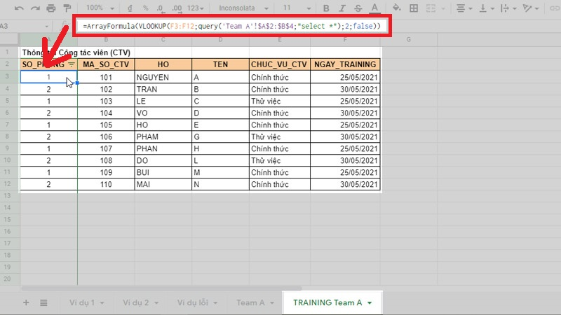 Một số ví dụ khi áp dụng kết hợp giữa hàm QUERY và hàm VLOOKUP