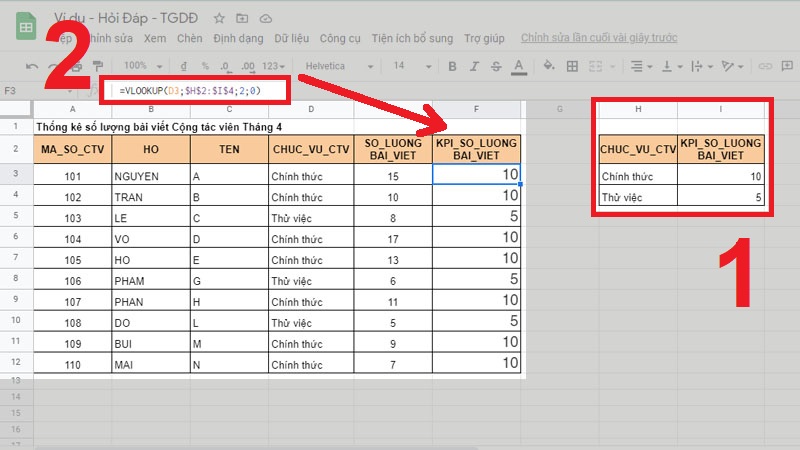 Hướng dẫn cách sử dụng hàm VLOOKUP trong Google Sheet