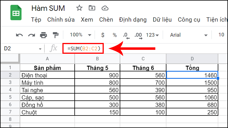 Hướng dẫn cách sử dụng hàm SUM để tính tổng trong Google Sheet